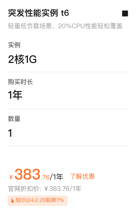 相关服务: 灵寿ECS突发性能t6费用